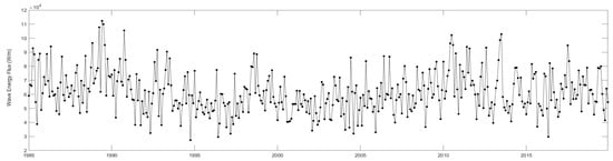 Temporal series monthly average wave energy flux.