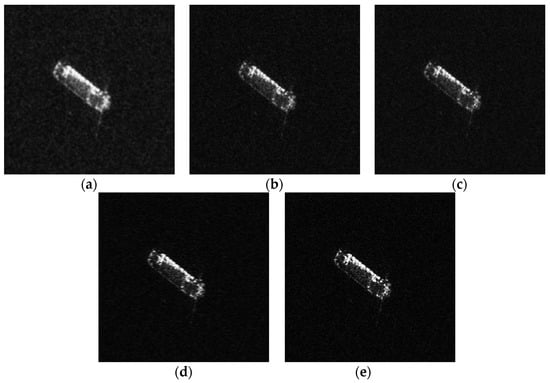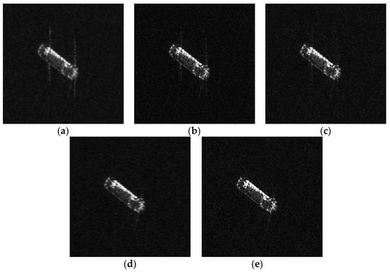 Figure 13 illustrates the imaging results of the various methods when different undersampling ratios are used for the ships. At full sampling, the noise is more obvious in the imaging results of CSA compared to the other methods. When the sampling ratio is reduced, the noise in the CSA-reconstructed image becomes more pronounced, and both CSA and L1 + TV images exhibit more prominent sidelobes. In comparison, the other methods show good results in suppressing noise, while our proposed method demonstrates better results.