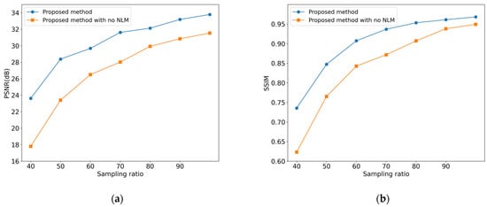 Table 2 provides an analysis of the reconstruction outcomes of the various methods at different sampling ratios. The data reveal that the proposed method consistently outperforms the others in terms of PSNR and SSIM values across all sampling ratios. Relative to traditional approaches such as CSA, L1 + TV, and PPB, both SAE-Net and our proposed method demonstrate superior performance metrics, with our method slightly surpassing SAE-Net. These findings further corroborate the robustness of our proposed method, particularly under conditions of reduced sampling ratios.