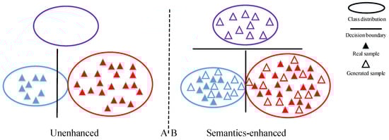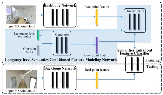 56]. By optimizing the Min–Max objective, the generator can finally learn the conditional distribution of real point features of each class conditioned on its semantic feature. In other words, an arbitrary number of point features for each class could be synthesized by sampling features from the learned conditional distribution.