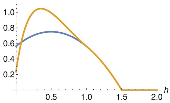 (The argument t here is simply a dummy variable; it does not denote time). The form of these functions depends on the choice of kernel function as described in ([12], §1); the expressions given above correspond to the Epanechnikov kernel. These functions are used to modify the jth kernel in the approximation Equation (16) near the boundary. Specifically, if the jth term is evaluated at a point h that is within a distance of the lower boundary, then the kernel is multiplied by