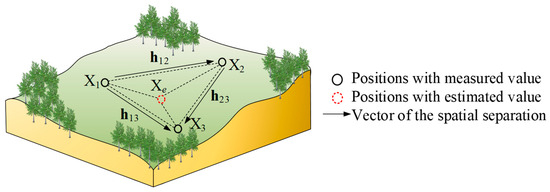 Figure 1 provides a conceptual figure of the Kriging interpolation method. The Kriging method is a sophisticated geostatistical procedure for generating an estimated value from a scattered set of points with measurement values. In Figure 1, Xα is the position at a total of n points (α = 1, 2, 3, …, n), while z(Xα) is the measured value at Xα. Xe is the position where the estimated result z(Xα) is obtained and is expressed as follows [18]: