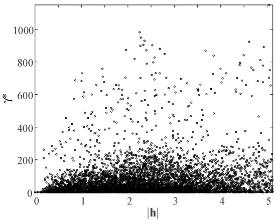 where h is a vector of the spatial separation between the two arbitrary points, while γ* for the spatial separation h can be plotted, as shown in Figure 2, which is referred to as the variogram cloud.