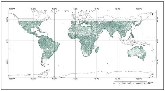 The resulting binary masks of the second step were then compared with the reference masks obtained in step 1. Since the global product created as described in Section Generating Global Data Cubes Using Google Earth Engine (GEE) has a 90 m spatial resolution, the binary masks obtained in step 2 were resampled to 30 m spatial resolution and reprojected to the Landsat 8 UTM projection system for this comparison. Given that this was a pixel-by-pixel comparison, it was necessary to be able to compare binary masks created in stages 1 and 2 at the same resolution. Resampling and reprojection were achieved using a raster and vector geospatial data converter library offered by the Open-Source Geospatial Foundation. From this data converter, called the Geospatial Data Abstraction Library (GDAL), the gdalwarp function was used [32].