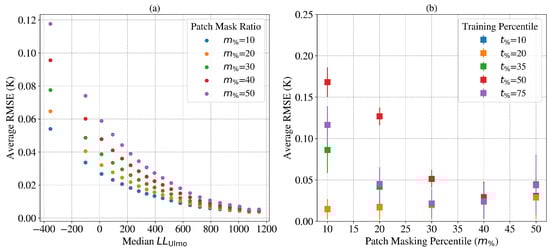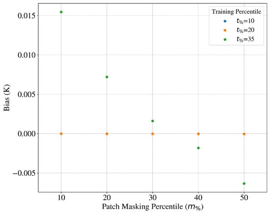 For the results presented here, we train using patches with randomly assigned location (and zero overlap). This approach does, however, lead to an inaccurate representation of actual clouds which exhibit spatial correlation on a wide range of scales. Future work will explore how more representative masking affects the results.