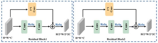 where and represent the inputs and outputs of the residual structure, respectively. F denotes the backbone function of the residual structure, H stands for the side branches of the residual structure, and R symbolizes the final RELU function.