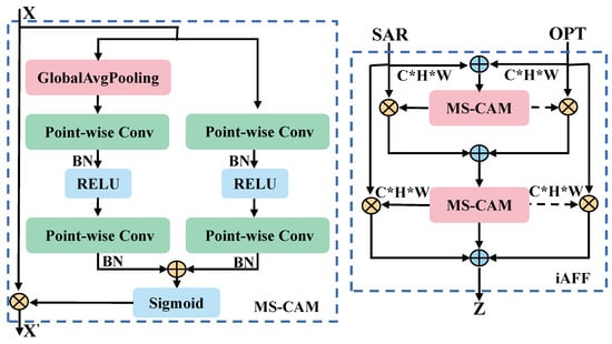 Introduced in the iAFF method is a multiscale channel attention module (MS-CAM), resulting in a coherent and universal feature fusion scheme. Simultaneously, the entire feature fusion process is implemented through iterative attention to mitigate the bottleneck arising from the initial integration of feature maps. The comprehensive structural representation is illustrated in Figure 7.