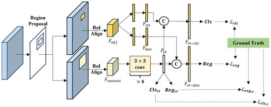 Table 8. It can be seen from the experiment that the object branch uses Separated 2fc, and the context branch uses Shared 4conv1fc to make the CABH detection performance the best. Separated 2fc can remove the coupling relationship between object recognition and positioning tasks and improve the detection performance. Shared 4conv1fc first captures context information through convolution and then transforms context information into useful information for object recognition and localization tasks through a fully connected layer.
