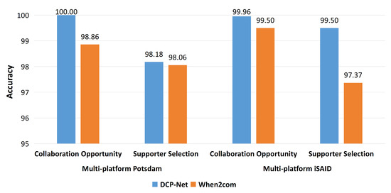 In our experimental setup, ResNet-18 [47] is employed as the feature backbone for DCP-Net, alongside other baselines. For the segmentation task, FCN serves as the primary decoder. To validate the generality of DCP-Net, we also incorporate PSPNet [68], DeepLabV3 [34], and UPerNet [35] as alternative decoders in our experiments. Additionally, three multiplatform datasets are partitioned into training and validation subsets, as specified in Table 1. In terms of optimization, the Adam optimizer is utilized with coefficient values of set to 0.9 and 0.999. The models undergo 50 epochs of training with a learning rate of . All experiments are conducted on an RTX-3090 GPU with PyTorch version 1.7.1.