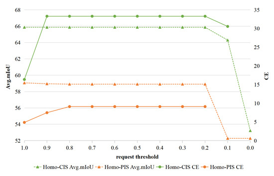 The Homo-CIS mode aims to verify the accuracy of collaboration establishment and supporter selection. The term “homogeneous” implies that all platforms within the collaborative network possess the same imaging payload, while “complete” means that the requester can obtain all the necessary information comprehensively. In this mode, one platform suffers from imaging degradation, and its original, noise-free observation randomly appears among the other members within the group. Out of the four platforms, only one is selected as a potential victim of degradation. We introduce noise into 50% of the images captured by this platform and randomly replace another platform’s observations with the nondegraded original images. As depicted in Figure 10, column 1 displays the degraded image captured by the selected platform. Columns 2 and 3 show the observation information from other platforms, while column 4 presents the original, noise-free observation image. Furthermore, it is worth noting that only the segmentation mask of the potentially degraded platform is used as supervision during the training process. An ideal goal of the Homo-CIS mode is that the platform is capable of recognizing the degradation of local observations and utilizing the original information provided by other platforms to compensate for its perception.