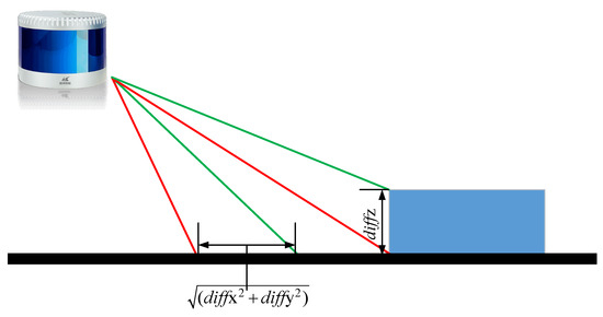 For example, imagine a special distance of the reference line . The covariance value of the noise of is and is the horizontal separation angle of the LiDAR device while is the vertical separation angle.