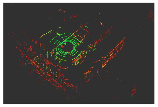 However, assigning the maximum height of points within a bin a value in the scan context can be problematic in certain situations. As depicted in Figure 8, due to the formation principle of LiDAR point clouds, the point cloud does not fully unfold at close ranges, which may result in the highest point not accurately representing the actual environmental point cloud.
