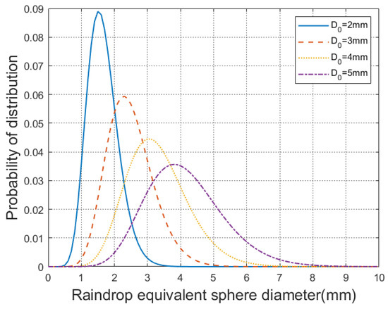Considering that raindrops of different sizes are not uniformly scattered in the rain area, the Gamma raindrop spectra [47] are used to describe the raindrop distribution, and the average raindrop size of the whole rain area is obtained based on the distribution probabilities of raindrops of different sizes.