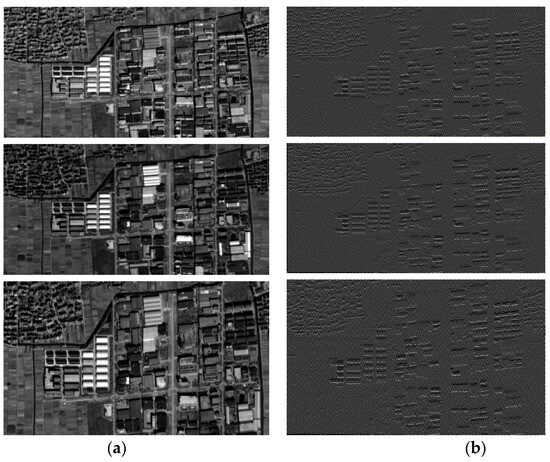 - In Equation (12), and denote the ground truth DSM and the estimated DSM, respectively. A function, F(X), is defined to quantify the number of valid grid cells. When X is true, the function returns a value of 1; otherwise, it returns 0. and represent the height estimation value and height ground truth, respectively.