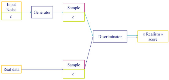 - Mirza, M.; Osindero, S. Conditional generative Adversarial Nets. arXiv 2014, arXiv:1411.1784. [Google Scholar] [CrossRef]