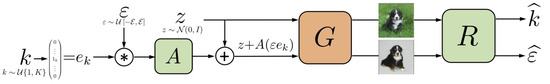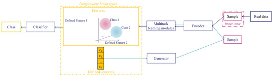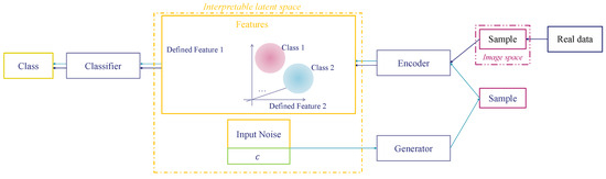 - Chen, X.; Duan, Y.; Houthooft, R.; Schulman, J.; Sutskever, I.; Abbeel, P. InfoGAN: Interpretable Representation Learning by Information Maximizing Generative Adversarial Nets. In Proceedings of the 30th Conference on Neural Information Processing Systems (NIPS 2016), Barcelona, Spain, 5–10 December 2016; pp. 2180–2188. [Google Scholar]