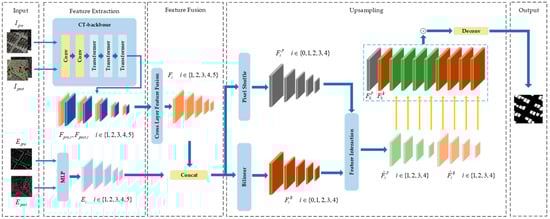 where represents the model output and represents the upsampling method of bilinear interpolation. The above is the main process of our model. Next, we will discuss the specific implementation details of each module in detail.