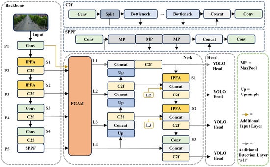 The overall structure of our model is shown in Figure 2. Compared to the original YOLOv8, our model has a series of improvements to enhance its applicability for object detection in UAV images.