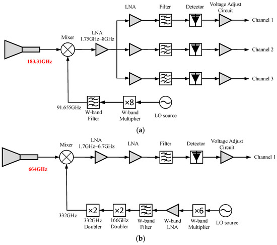Schematic of the 183 GHz (a) and 664 GHz (b) receivers on ATICI.