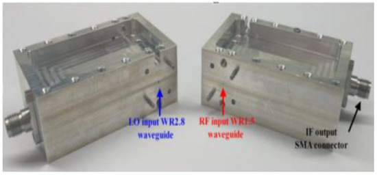The LO circuit locks the input reference signal between 2000 MHz and 4000 MHz through a comb spectrum generator and a digital mixing ring circuit, and then achieves the local oscillator signal in the Ku frequency band through an eight-fold frequency circuit. The frequency source adopts MCM technology to package the bare chip and packaged device in the same shell. The schematic diagram of 183 GHz and 664 GHz receivers is shown in Figure 16.