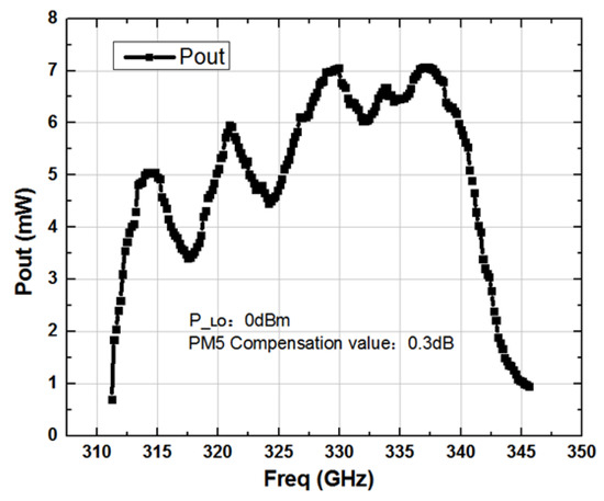 From the test results of the 330 GHz Frequency multiplier, the output power of the Frequency multiplier is more than 4~5 mV within the operating frequency range, which meets the local oscillator power of driving the 664 GHz mixer.