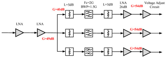 The back-end part of the receiver mainly performs low noise amplification, power division, filtering, and demodulation processing on the broadband intermediate frequency signal. The DC signal after demodulation is amplified and biased before being output. An electrically adjustable attenuator is added to the intermediate frequency part of the receiver to achieve temperature compensation. The RF chain adopts MCM technology, and all circuits are implemented through bare chips, packaged in a unified shell. To achieve cavity isolation and electromagnetic shielding, the RF chain adopts independent cavity separation, and the cavities will be vertically interconnected to achieve signal transmission. The schematic diagram of the receiver back-end is shown in Figure 23.