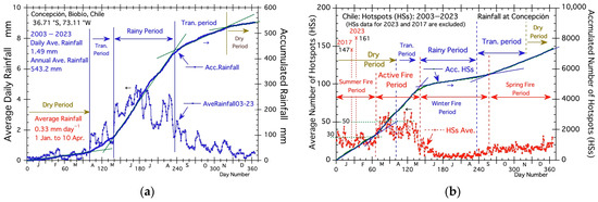 3.1.2. Average Active Fire Season and Rainy Period