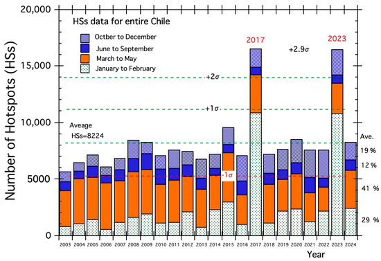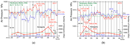 - The number of HSs on peak fire days (26 January 2017 and 3 February 2023) were 2676 and 2746. Those numbers were about 90 times larger than the average (30).