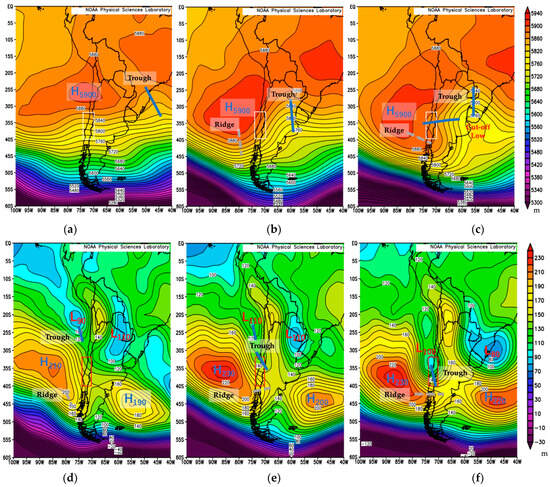 - On 2 February, LJM over Argentina started due to the above persistent H5990 in the southeast Pacific Ocean, as shown in Figure 8b. LJM could be checked by contour lines of 5760 m near a light-yellow color.