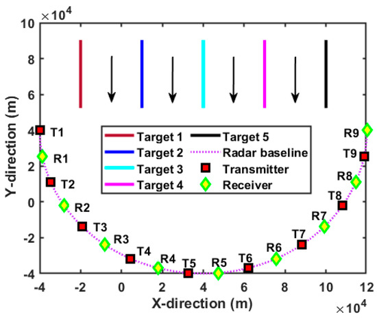 (b) The ROI consists of Q point-like targets, and all targets are widely separated and maintain the cruising state. For the D-MIMO radar system, the number of moving targets in the ROI is known as a priori information before tracking them in the RDJ environment.
