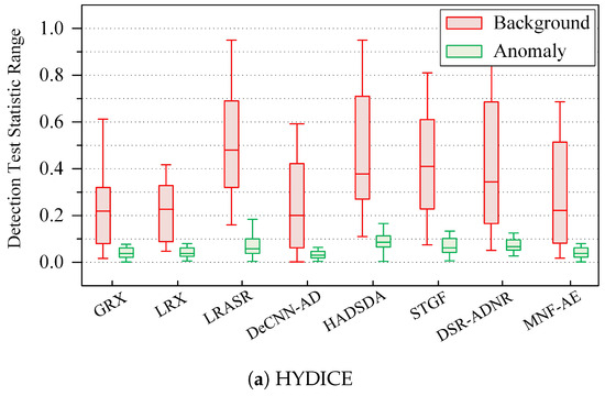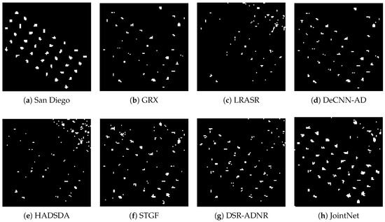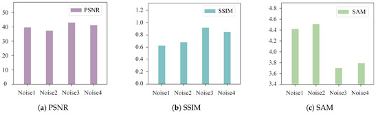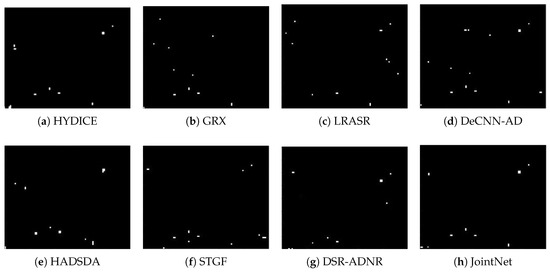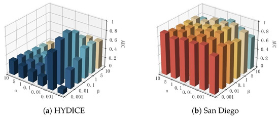 Here, L represents the total loss function, serving as the final optimization objective of noisy HSI anomaly detection based on MTL, and and are regularization parameters. This loss function enables the achievement of three objectives: (1) analyzing noise distribution characteristics and morphological features, denoising the noisy HSI, and utilizing the noise component as prior information for anomaly detection, enriching the information available for both subtasks; (2) generating a denoised HSI without noise and accurately representing the background portion; and (3) considering the influence of noise and intrinsic data characteristics to calculate the anomaly degree of the pixel, thereby avoiding misclassifying anomaly target pixels as noise pixels.