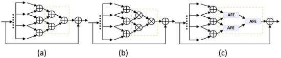 Different designs of the ITP module. (a) Additive feature fusion (AFF); (b) Multiplicative feature fusion (MFF); (c) Adaptive Feature Enhancement (AFE).