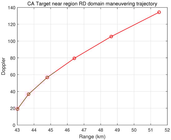 According to Equation (24), the range and Doppler state of the kth frame derive their values from the initial range and Doppler states as follows: