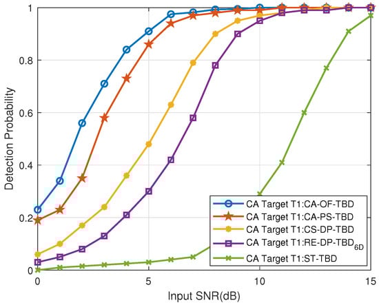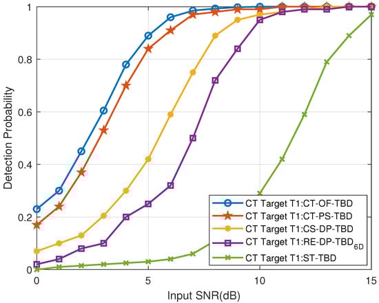 Figure 29. The CT far-region Target T1’s detection probability vs. input SNR.
