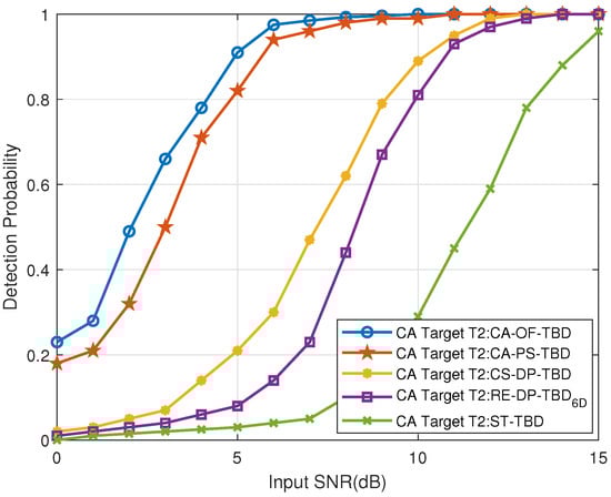 Figure 30. The CT near-region Target T2’s detection probability vs. input SNR.