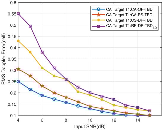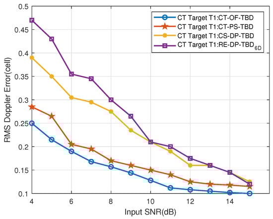 Figure 33. The CT far-region Target T1’s Doppler RMSE vs. input SNR.