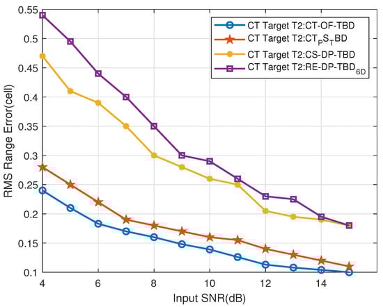 Figure 32. The CT near-region Target T2’s range RMSE vs. input SNR. - (2)
