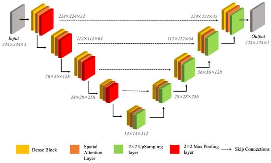 - Ronneberger, O.; Fischer, P.; Brox, T. U-net: Convolutional networks for biomedical image segmentation. In Proceedings of the Medical Image Computing and Computer-Assisted Intervention–MICCAI 2015: 18th International Conference, Munich, Germany, 5–9 October 2015; Proceedings, Part III 18. Springer: Berlin/Heidelberg, Germany, 2015; pp. 234–241. [Google Scholar]