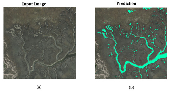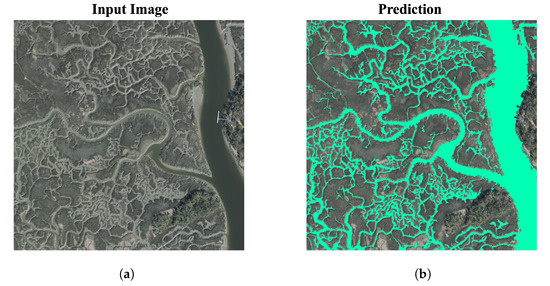 (a) Larger spatial creek area with extensive grazing and mudflat formations. (b) Prediction results from ADU-Net.