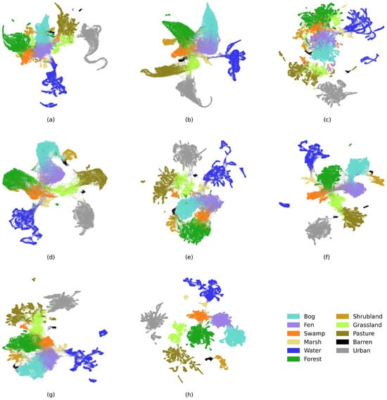 - McInnes, L.; Healy, J.; Melville, J. UMAP: Uniform Manifold Approximation and Projection for Dimension Reduction. arXiv 2018, arXiv:1802.03426. [Google Scholar] [CrossRef]