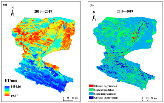 Analysis of the dynamics of ET in the HRB from (a) 2010 to 2015 and (b) from 2015 to 2019.