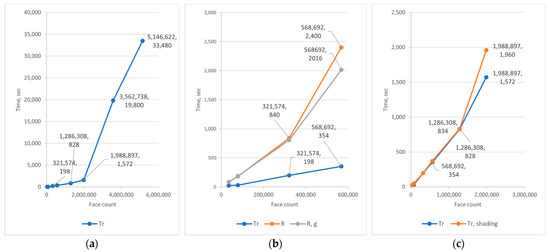 | Cell Size, m | Face Count | Tr, s | Tr, Shading, s | R, s | R, Graft, s |