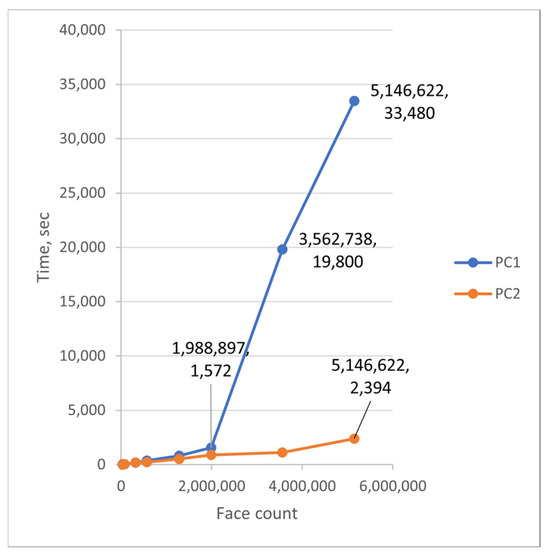 | Study Area, km2 | Face Count | Time, s | Ratio Face Count/s | |