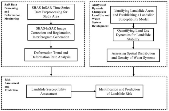 During the research process, SBAS-InSAR technology is used in conjunction with multi-source remote sensing techniques to accurately extract landslide-prone areas and predict landslide development, involving several detailed steps and methods as follows:
