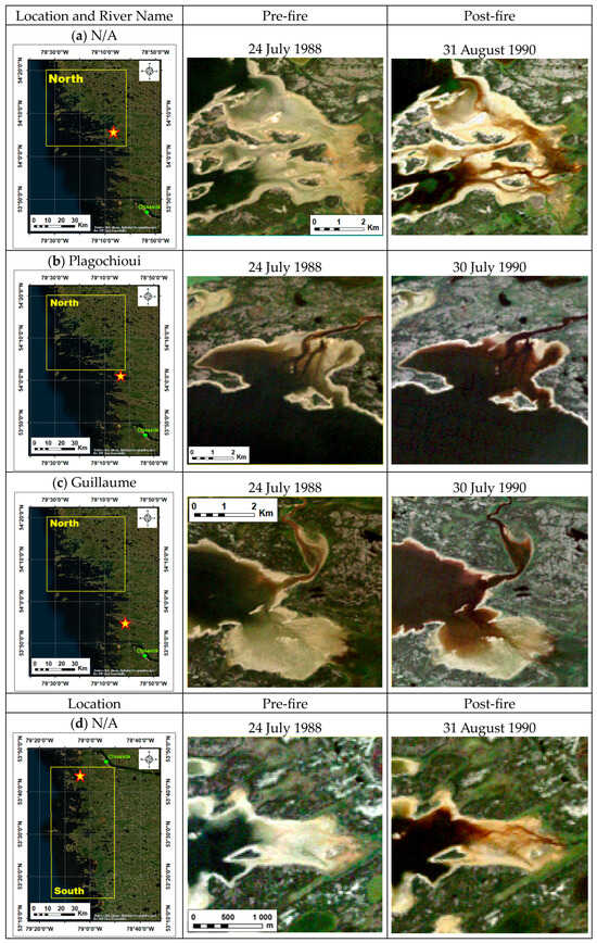 - Leblon, B.; Clyne, K.; LaRocque, A. Eelgrass, water turbidity and forest fire as seen from Landsat and UAV images: A case study in Eeyou Istchee. In Book of Abstracts of the ArcticNet Annual Scientific Meeting 2019 (ASM 2019); ArcticNet: Québec, QC, Canada, 2019; Volume 81. [Google Scholar]