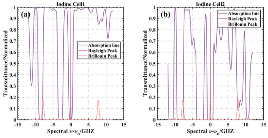 The simulated normalized iodine cells’ absorption spectra and the received scattering spectra are shown in Figure 5.