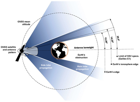 Schematic of the GNSS transmitted signals in deep space. The main lobe beamwidth value was taken from the interoperable GNSS SSV book [8].