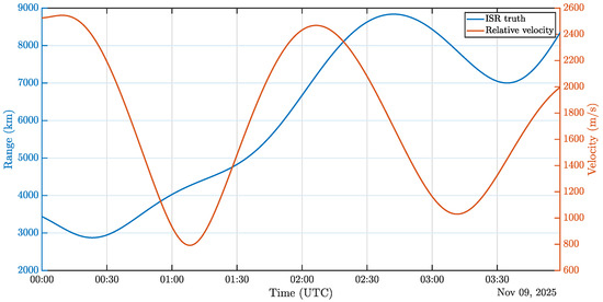 ISR and relative velocity between VMMO and Pathfinder over a 4 h test window.