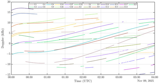 Finally, another solution presented in the literature in the context of differential Doppler positioning in [61], consists in finding the unit steering vector , which at each epoch k will satisfy exactly Equation (13), such that:
