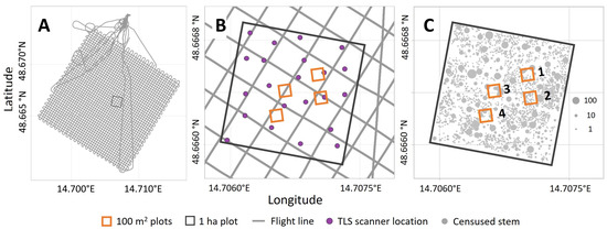 - Torralba, J.; Carbonell-Rivera, J.P.; Ruiz, L.Á.; Crespo-Peremarch, P. Analyzing TLS Scan Distribution and Point Density for the Estimation of Forest Stand Structural Parameters. Forests 2022, 13, 2115. [Google Scholar] [CrossRef]